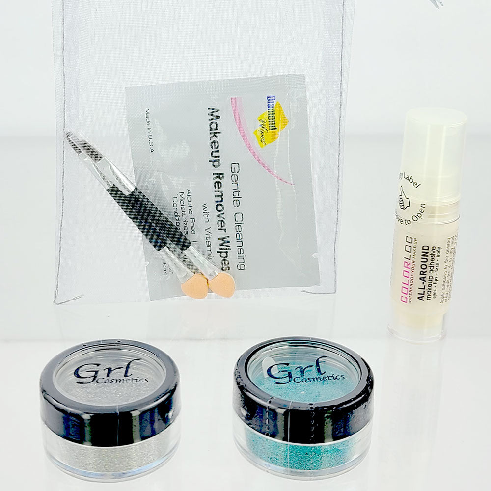 This Custom Makeup Kit is the perfect kit for anyone that wants to get started using our amazing Face and Body Glitters.