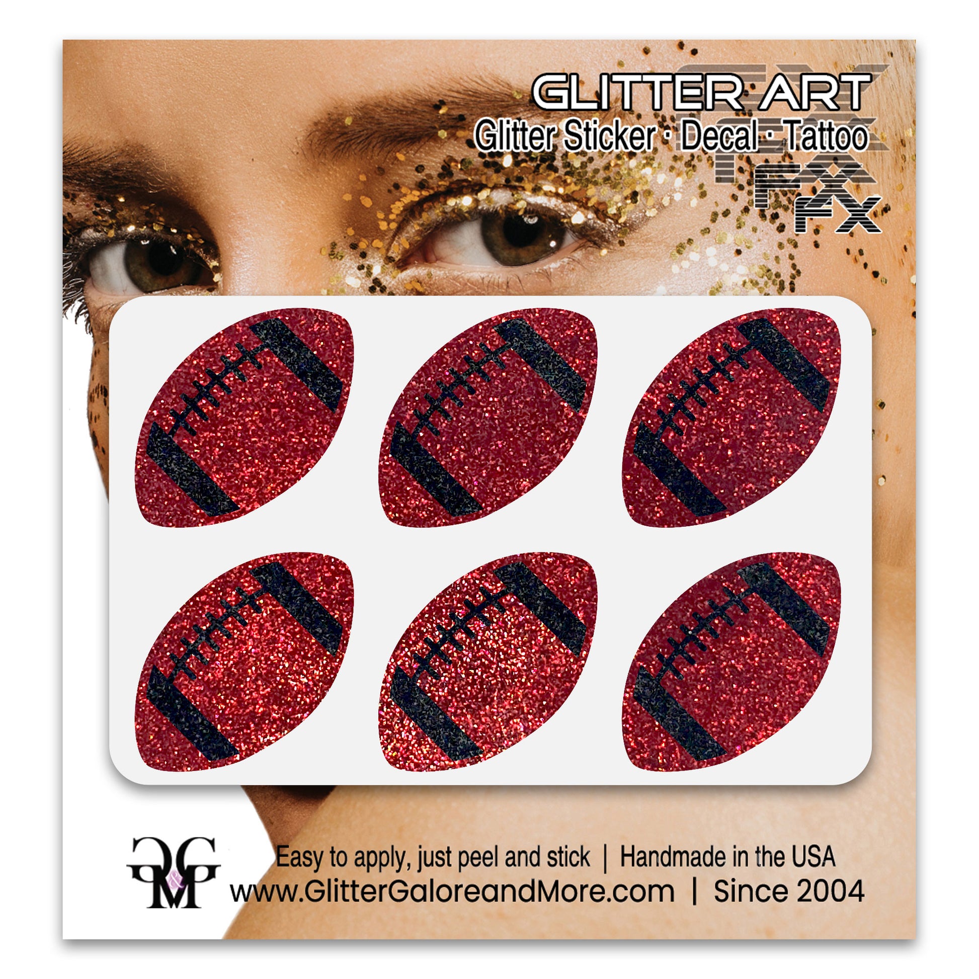 For the best results, ensure the area where you want to apply the sticker is clean, dry, and free of oils, lotion, or powder. Customize your glitter footballs by contacting us for additional color options.