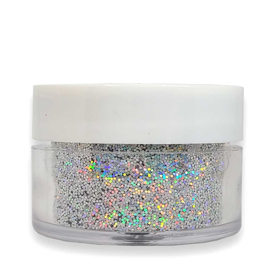Silver Prism is an fine hex cut silver glitter with dazzling holographic sparkles. This extra fine glitter is great for cosmetics, nail art, glitter tattoos, hair glitter, glitter eyeliner, raves, festivals, pixie dust, making soaps, making candles, tumblers, glitter pens and so much more.